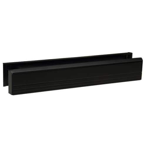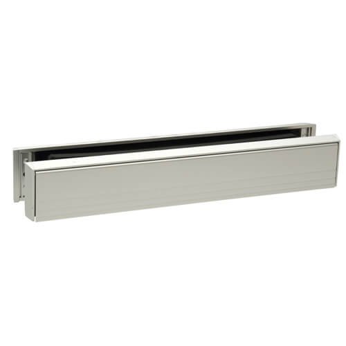 Slimline letterplate for doors which cannot accept standard height plates. Fixings not supplied. All metal construction, no internal brush seal. Use on doors with slim midrails or at the bottom of the door. Suits door thickness 36-70mm.